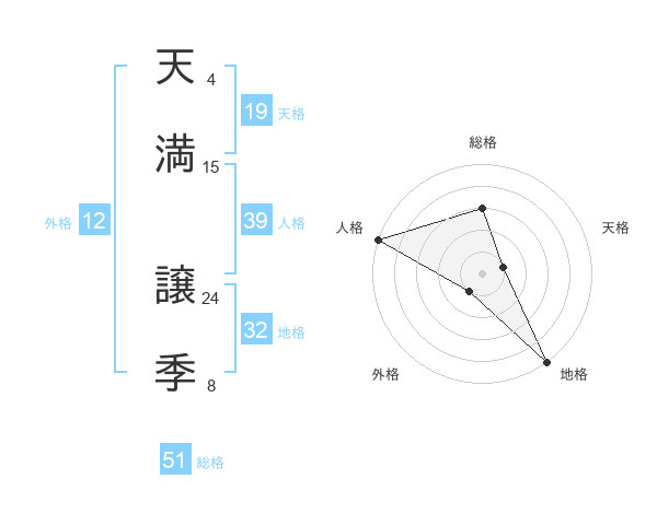 家系が持つ宿命的な運勢を表します。祖先から受け継いだ苗字ですので自分の力が及びません。家柄を象徴します。