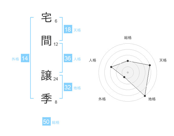 宅間 譲季さんを姓名の画数から五運を鑑定