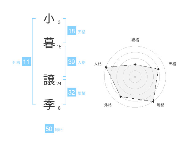 小暮 譲季さんの総格は50画の2点!