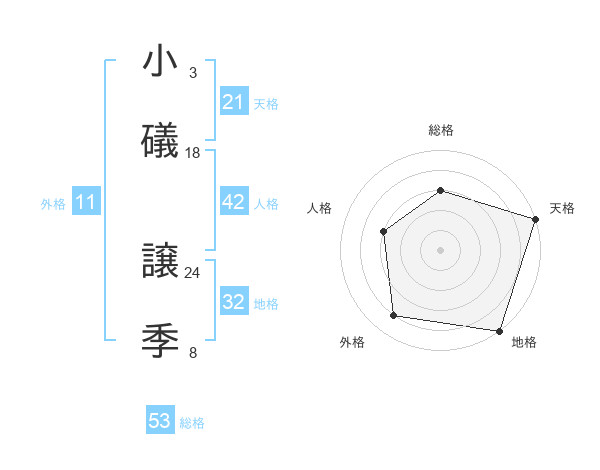 小礒 譲季さんの総格は53画の3点!