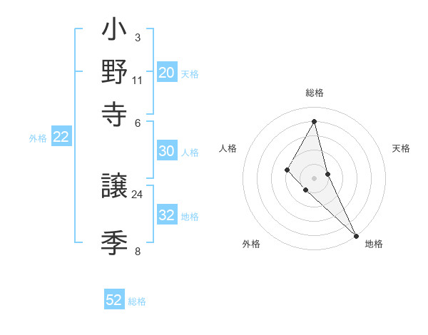 小野寺 譲季さんの総格は52画の4点!