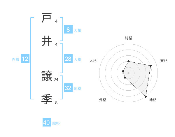 戸井 譲季さんを姓名の画数から五運を鑑定