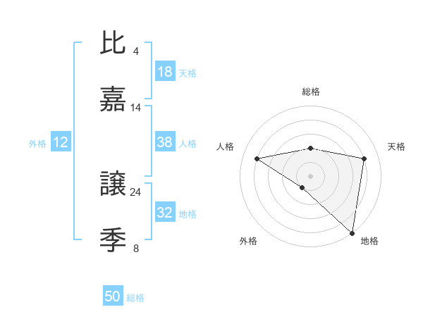 比嘉 譲季さんの総格は50画の2点!
