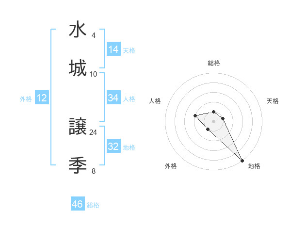 水城 譲季さんの総格は46画の1点!