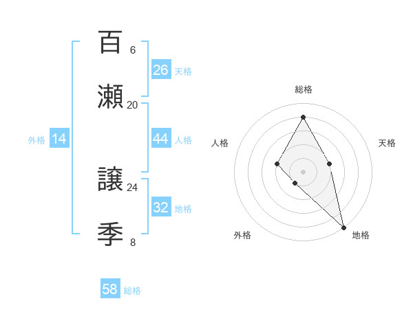 百瀬 譲季さんを姓名の画数から五運を鑑定