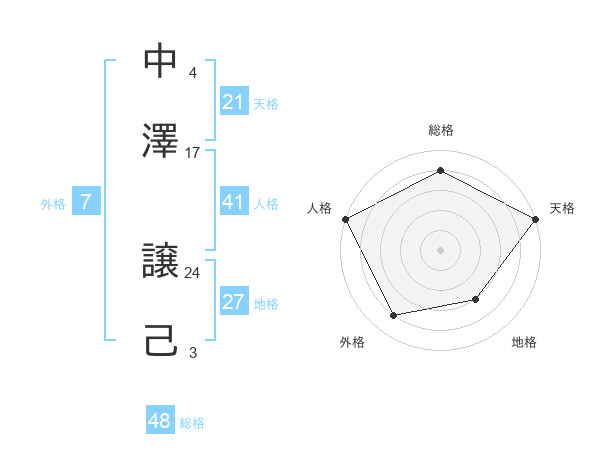 中澤 譲己さんの天格は21画の5点!