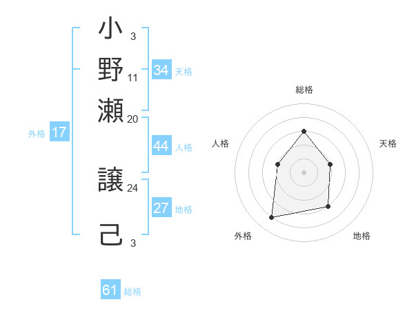小野瀬 譲己さんを姓名の画数から五運を鑑定
