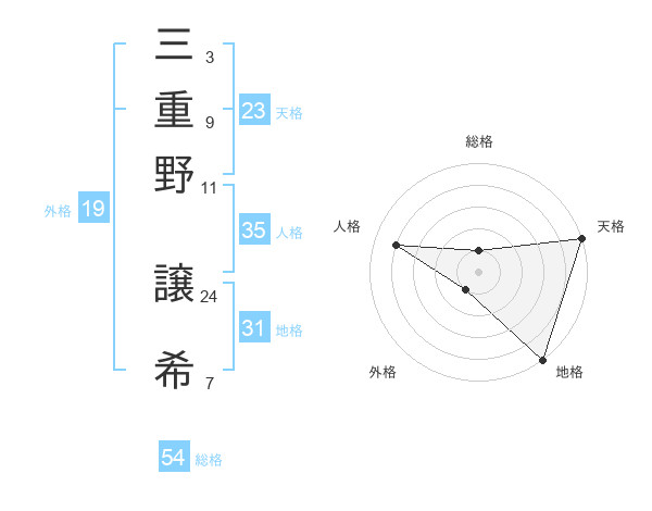 三重野 譲希さんを姓名の画数から五運を鑑定