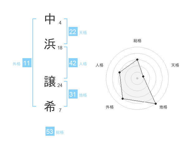 中浜 譲希さんの総格は53画の3点!
