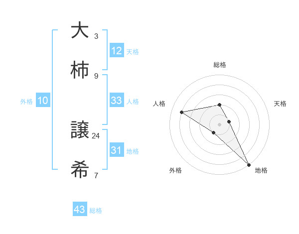 大柿 譲希さんを姓名の画数から五運を鑑定