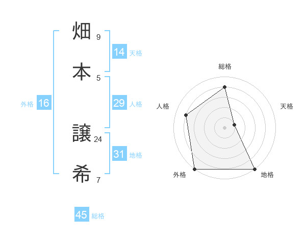 畑本 譲希さんを姓名の画数から五運を鑑定