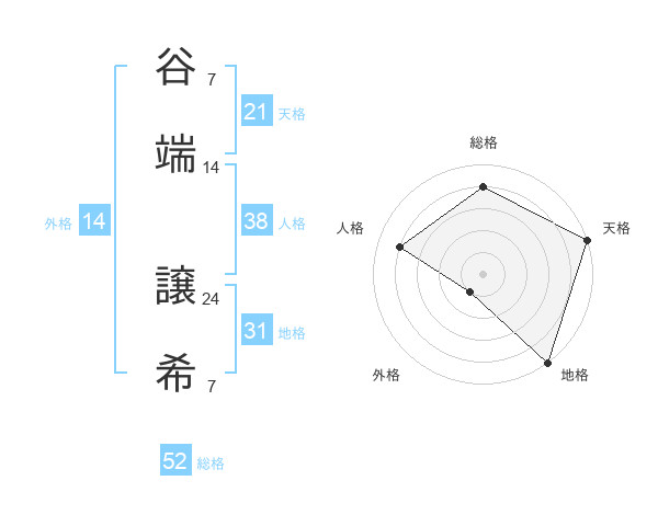 谷端 譲希さんを姓名の画数から五運を鑑定