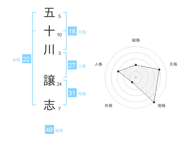 五十川 譲志さんを姓名の画数から五運を鑑定