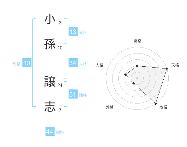 小孫 譲志さんを姓名の画数から五運を鑑定