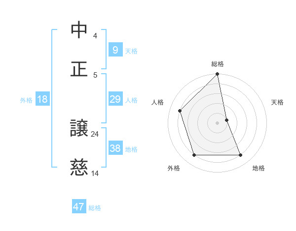 中正 譲慈さんの総格は47画の5点!