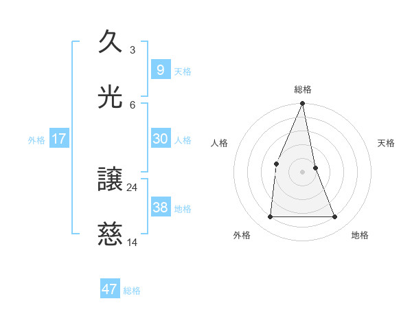 久光 譲慈さんの総格は47画の5点!