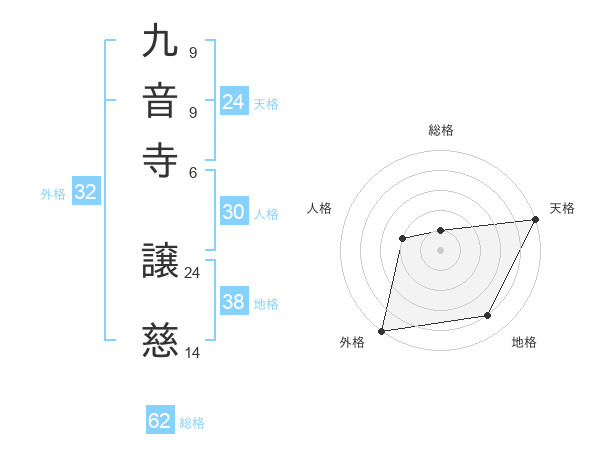 九音寺 譲慈さんの総格は62画の1点!