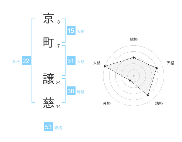 京町 譲慈さんの総格は53画の3点!