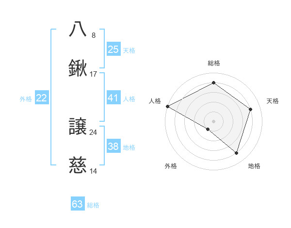 八鍬 譲慈さんの総格は63画の4点!