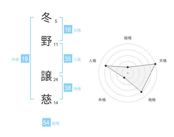 冬野 譲慈さんを姓名の画数から五運を鑑定