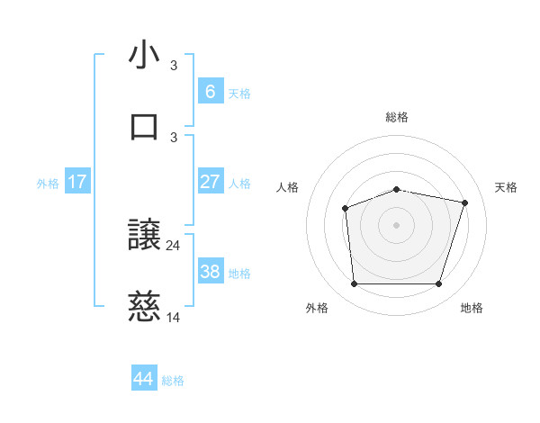 小口 譲慈さんの総格は44画の2点!