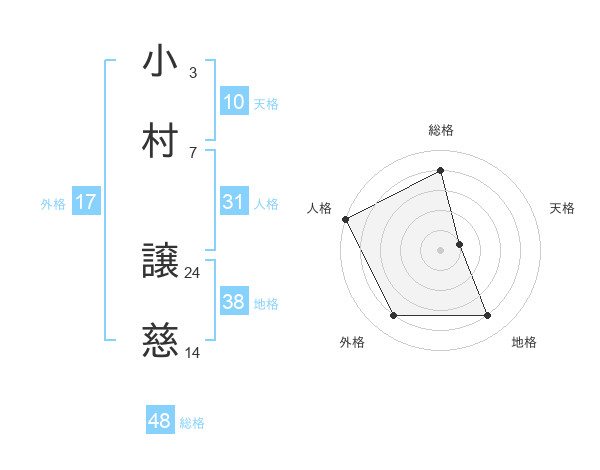 小村 譲慈さんの総格は48画の4点!