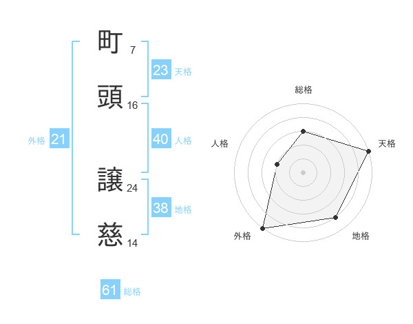 町頭 譲慈さんの総格は61画の3点!