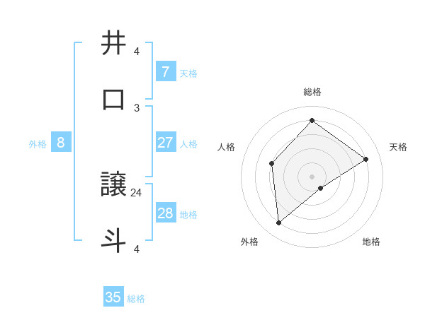井口 譲斗さんの総格は35画の4点!