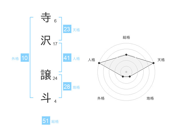 寺沢 譲斗さんの総格は51画の3点!