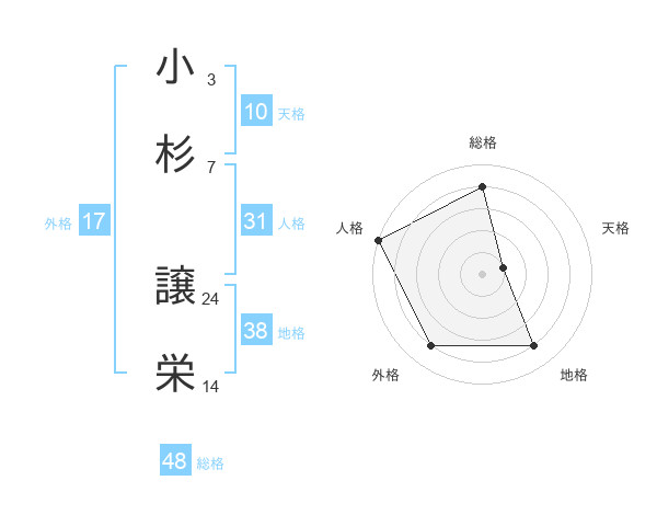 小杉 譲栄さんを姓名の画数から五運を鑑定
