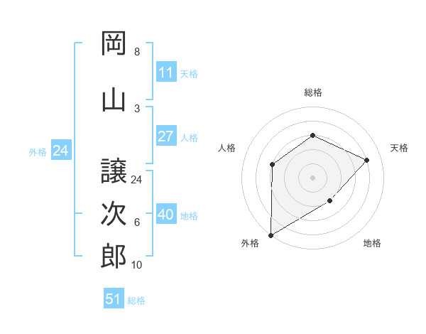 岡山 譲次郎さんを姓名の画数から五運を鑑定