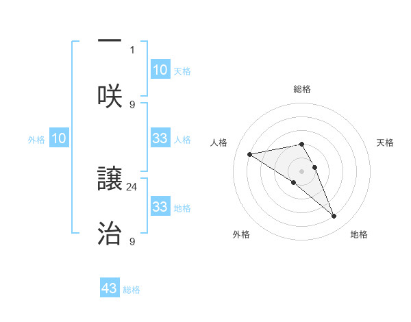 一咲 譲治さんの総格は43画の2点!