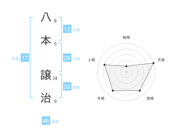 八本 譲治さんの天格は13画の5点!