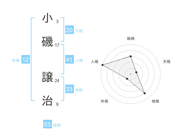 小磯 譲治さんを姓名の画数から五運を鑑定