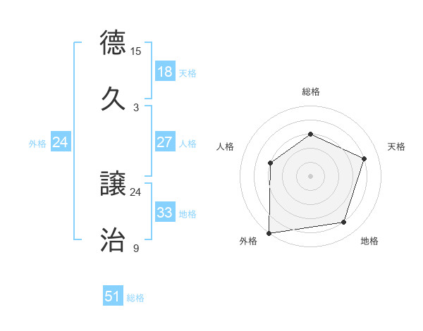 德久 譲治さんの総格は51画の3点!