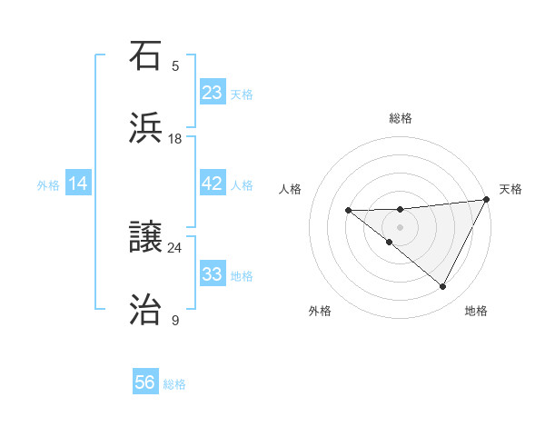 石浜 譲治さんを姓名の画数から五運を鑑定