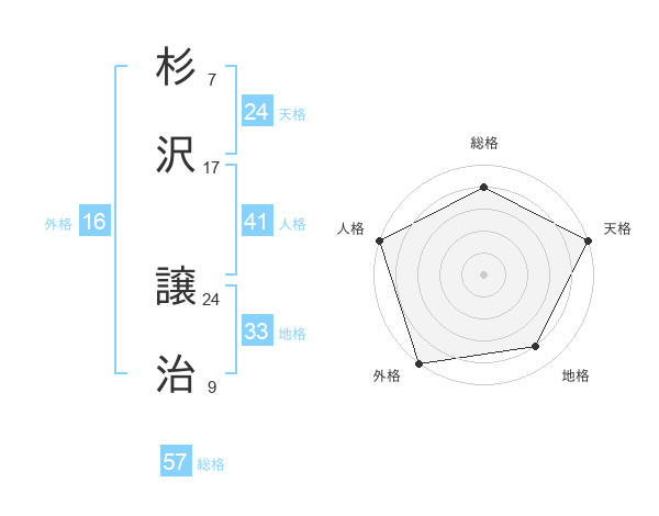 杉沢 譲治さんの総格は57画の4点!