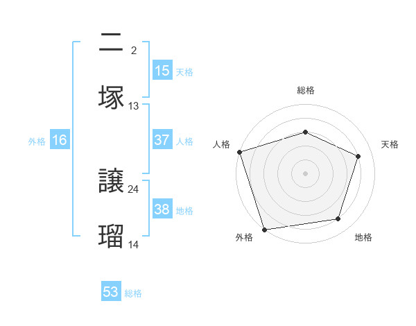 二塚 譲瑠さんを姓名の画数から五運を鑑定
