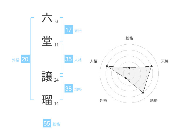 六堂 譲瑠さんを姓名の画数から五運を鑑定