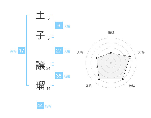 土子 譲瑠さんを姓名の画数から五運を鑑定
