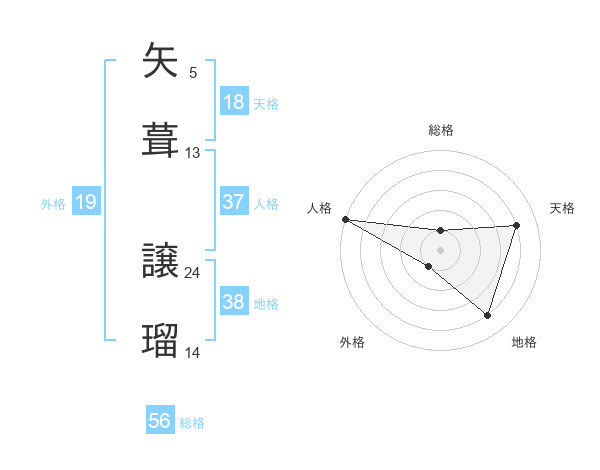 矢葺 譲瑠さんの総格は56画の1点!