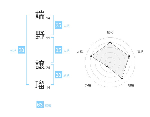 端野 譲瑠さんの総格は63画の4点!