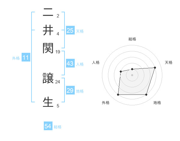 二井関 譲生さんを姓名の画数から五運を鑑定