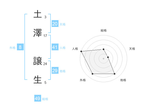 土澤 譲生さんの総格は49画の2点!
