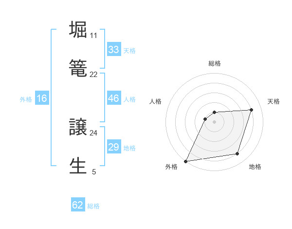 堀篭 譲生さんの総格は62画の1点!