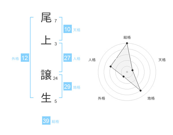 尾上 譲生さんの地格は29画の4点!