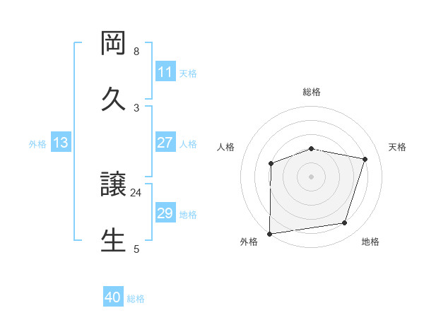 岡久 譲生さんの総格は40画の2点!