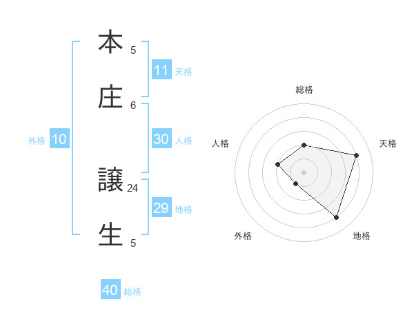 本庄 譲生さんの総格は40画の2点!