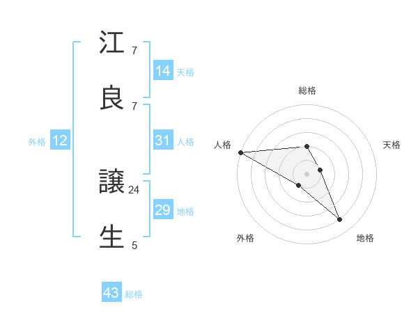 江良 譲生さんの総格は43画の2点!