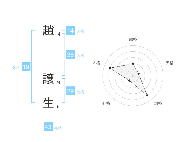 趙 譲生さんの総格は43画の2点!